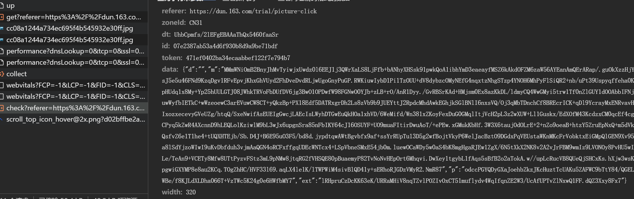 return tr, dx生成的轨迹列表和点选列表传入JS加密函数后,拼接成完整data。提交check接口,即可获得成功响应。