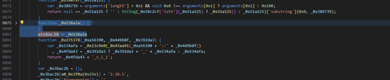 2.28.5版本大量采用十六进制变量名和字符串数组映射,增加逆向难度。调试时建议先提取完整函数体,替换a0_0x3f0a调用为真实字符串,再逐步断点跟进restrict、updateJigsaw等辅助方法。环境补全重点在于模拟document和window对象的关键属性,避免运行时异常。