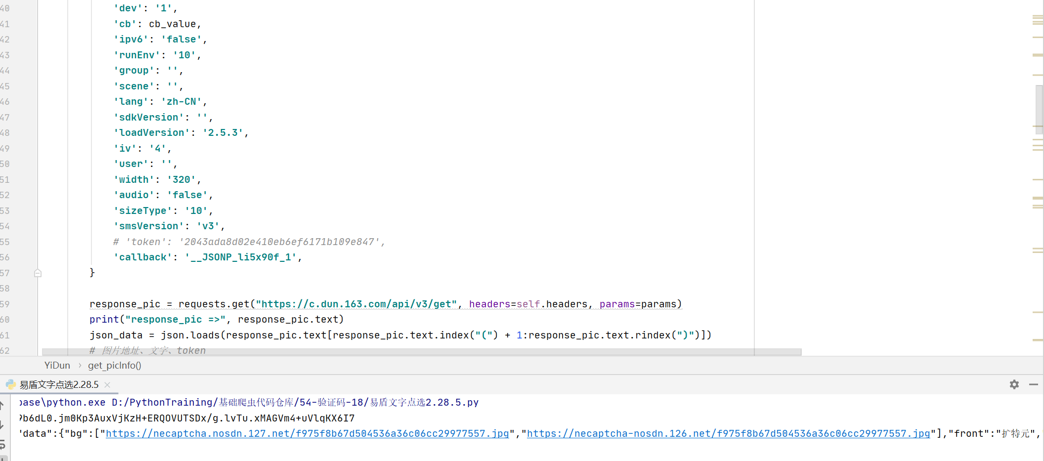 }补齐这些对象后,直接调用导出的方法即可拿到cb值。结合Python的requests库发送请求,成功获取到图片URL、待点选文字列表以及后续check接口必需的token。此时整个图片环节已经打通,后续重点转向识别与验证。