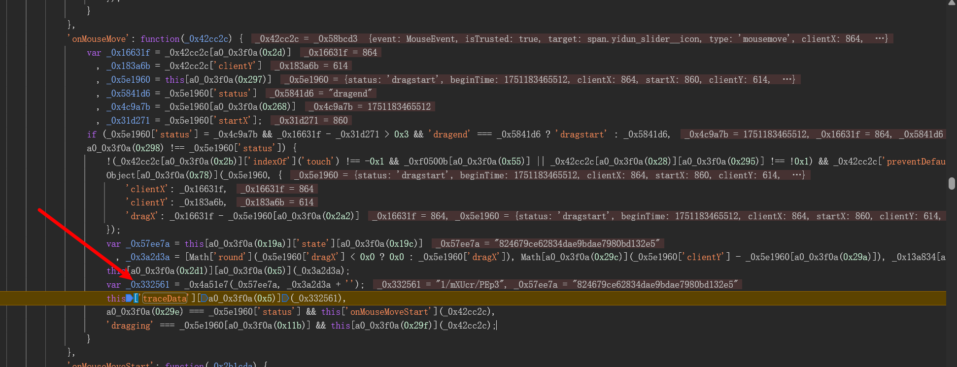 p字段代表滑动距离的百分比,经过加密后与token结合。f字段则是轨迹数组的压缩版本,用于压缩传输。ext字段记录了鼠标点击次数和轨迹长度,用于进一步验证行为真实性。