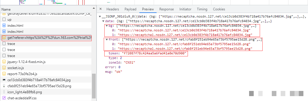 注意,这个token并非来自getconf请求,而是从图片响应中提取的。正确获取token是整个验证链条的关键环节之一。如果token提取错误,后续的轨迹加密将无法通过服务器校验。图片资源本身是经过特殊处理的JPEG格式,边缘缺口位置随机生成,这增加了轨迹模拟的难度。
