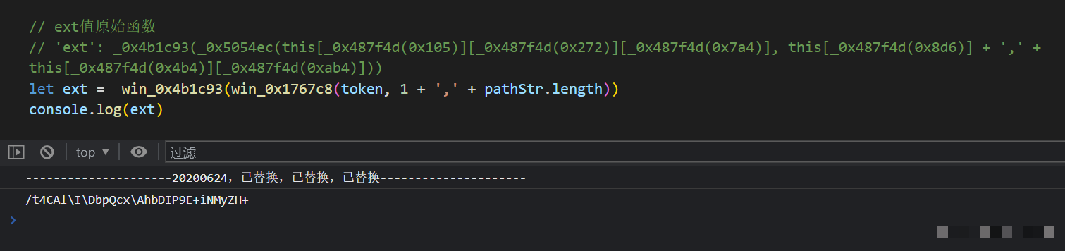 var ext = finalEncrypt(pathEncrypt(token, '1,' + traceData.length));