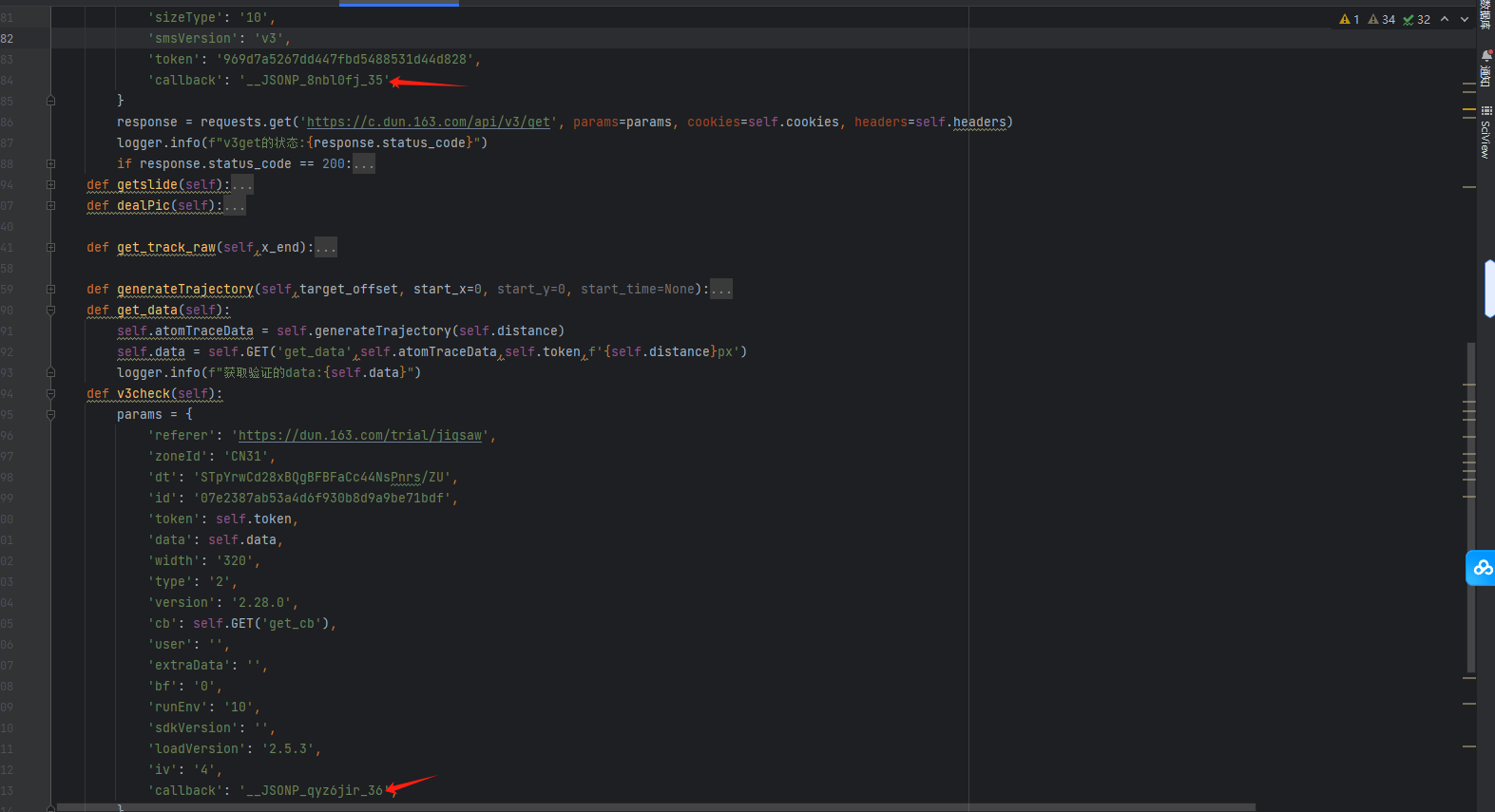 扣取完成后,cb参数即可用于构造完整请求URL。结合irToken和图片相关字段,接口返回的数据包含滑块背景图、缺口图以及初始token。这些信息为轨迹模拟和最终验证提供了必要素材。值得注意的是,cb的生成算法与前端环境密切相关,模拟时需确保浏览器指纹一致以避免额外校验。