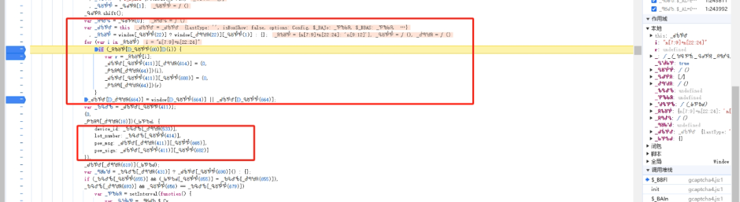 验证码参数的核心载体是w对象,它汇集了device_id、lot_number、pow_msg、pow_sign以及语言、浏览器指纹等配置。在较新版本中,直接搜索“w:”就能快速定位赋值语句,而不必依赖旧有的Unicode字符串查找。
