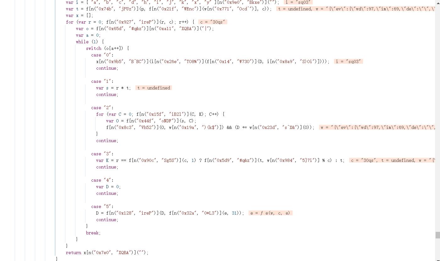 运行时可能会报v或f未定义。这时回到网页相同位置再打断点,把缺失的辅助函数也扣下来补全。反复调试几次后,data就能成功生成。这种方法最终代码量在800行左右,优点是几乎原汁原味保留了网站逻辑,缺点是体积大、维护稍麻烦。