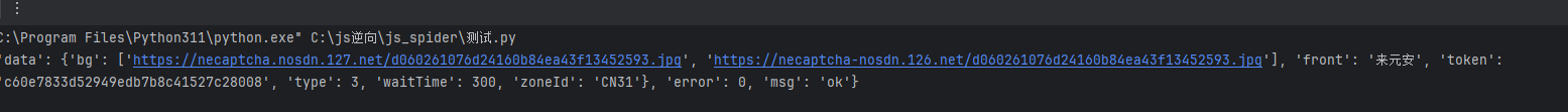 补全后构造完整请求参数,包括referer、zoneId、id、type、version等字段。发送GET请求到验证码接口,解析JSONP返回数据,就能拿到token、前景文字数组和背景图片URL。这些数据是后续识别和轨迹生成的基础。