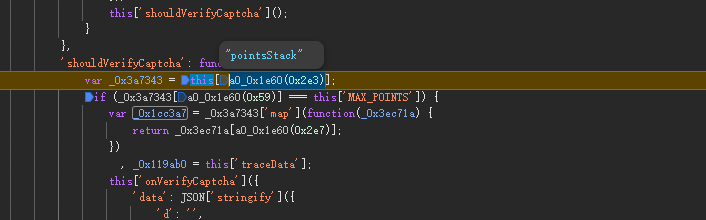 除了m值,验证接口还需p和ext两个参数。p值往往是位置相关数据的打包形式,通过类似栈追踪方法定位其生成函数。ext则包含额外扩展信息,如设备指纹或会话数据。补全环境后单独导出这些函数,即可得到正确值。