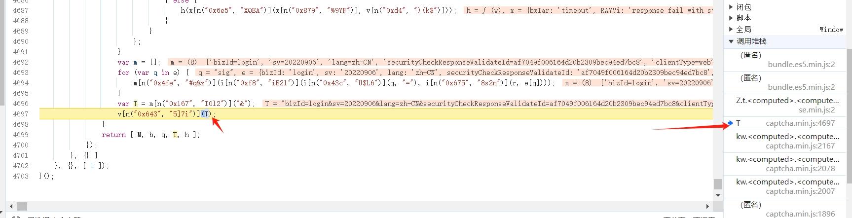 data参数是验证接口的核心加密字段,直接影响提交是否通过。定位它最有效的方法是堆栈跟踪,在浏览器调试器里对相关函数打断点。点击验证按钮后,断点命中,就能一步步回溯到加密源头。