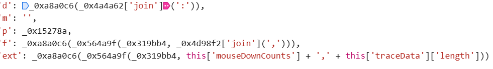 继续往下分析,_0xa8a0c6和_0x564a9f这两个函数反复出现,它们负责核心加密运算。其实需要逆向的地方只有三处。完成后构造data时,先从浏览器复制完整值到本地脚本,确保一次请求成功,再一步步替换变量定位问题。