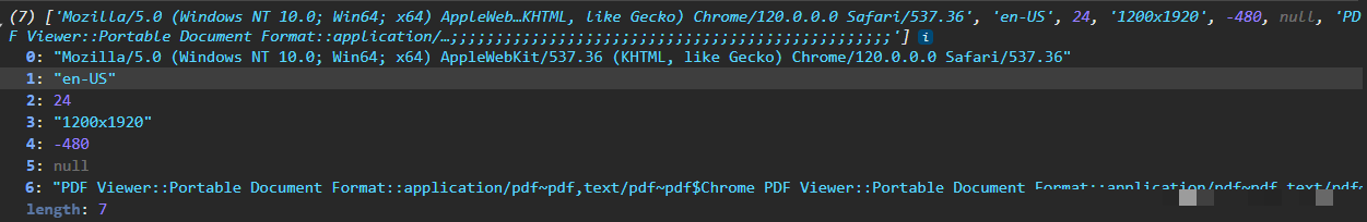 进入断点位置后,会清晰看到两个关键数组。第一个数组罗列了指纹属性键名,涵盖userAgent、screenResolution、pluginList等数十项;第二个数组则对应各属性的实时计算值。这些数组正是FP指纹数据的源头。补全相关原型方法如toString、join、map之后,FP即可正常产出。整个过程中必须密切关注try-catch结构,一旦异常抛出,流程会转向错误分支,导致最终FP无效。