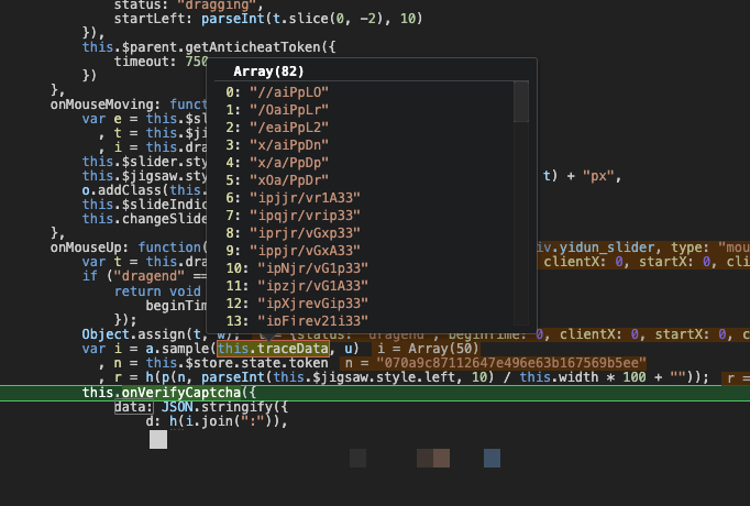 traceData数组并非存储原始数字,而是经过加密处理的字符串序列。找到this.traceData.push调用处设置断点,即可捕获真实加密值。调试时建议在鼠标抬起事件处打断点,逐步观察n.dragX、n.clientY等变量变化。整个加密逻辑简洁却严密,使用后可直接复用。