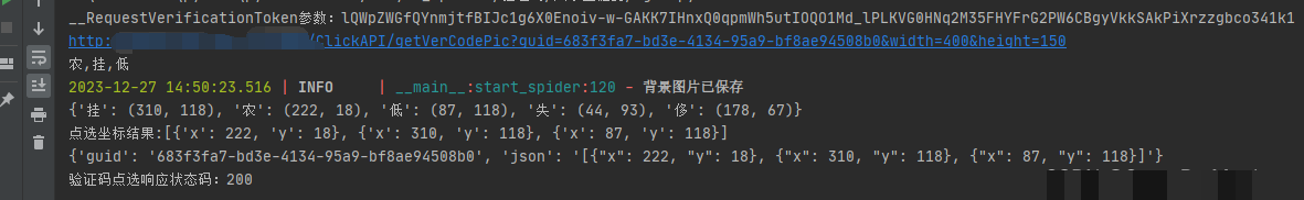 拿到坐标字典后,构造点击请求体,依次提交每个文字的位置。接口返回1即表示验证通过。调试过程中,建议在控制台打印每次请求的完整参数,方便排查坐标偏移问题。有时网站会要求坐标顺序严格匹配文字出现顺序,这一点需要特别注意。