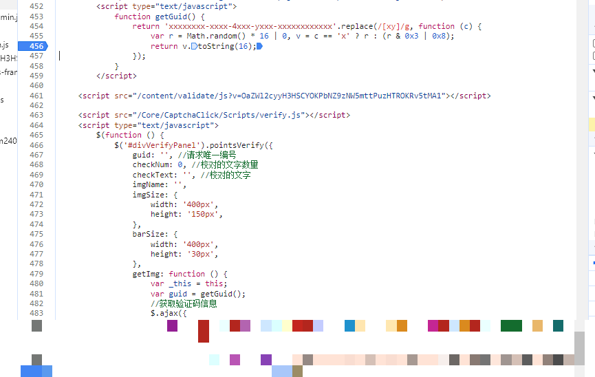 下一步是查看调用栈。点击接口名称,在右侧Sources或Call Stack中向上追溯,就能找到生成guid的具体JS函数位置。通常这个函数会涉及随机数生成或加密逻辑,简单跟栈几步即可定位。拿到guid后,后续验证接口的路径也就清晰了。保存接口返回的图片字节流和文字列表到本地文件,为后续处理做好准备。