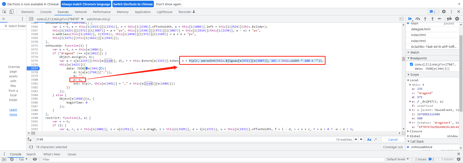 }d参数分析至此完成。m为空字符串,p参数通过parseInt获取jigsaw元素的移动距离。ext则用轨迹长度计算。
