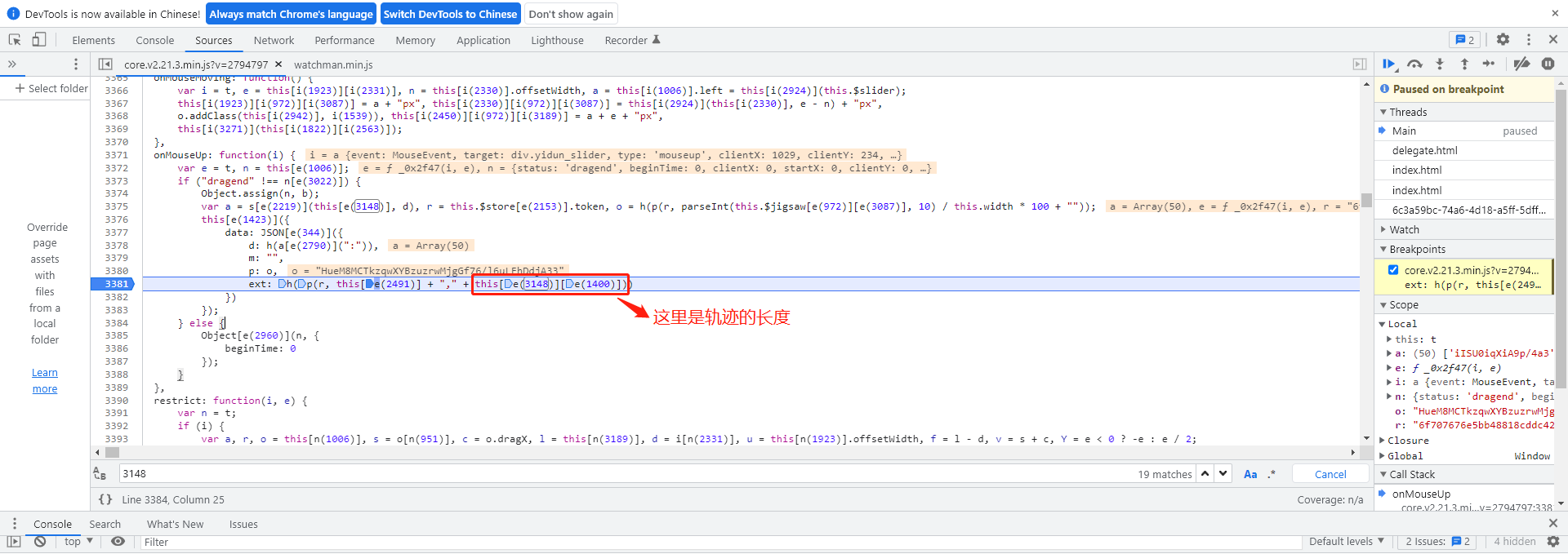 最关键的data参数是轨迹加密后的字符串。它不是简单的坐标拼接,而是经过多层处理的结果。逆向时不能急于求成,先在控制台设置断点,逐步跟进调用栈。会发现有一个函数负责把原始轨迹数组转换成加密字符串,里面会用到token作为密钥的一部分,同时把轨迹长度作为重要特征值传入。