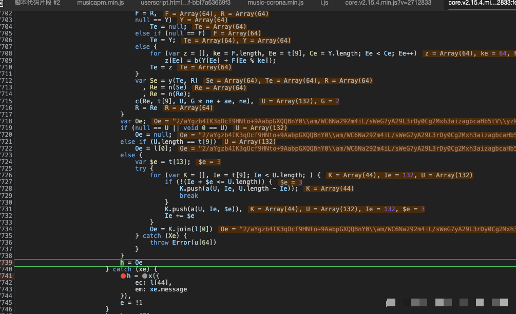 })();清除缓存刷新页面后,断点停下时向上追溯,就能发现h变量就是最终FP。它通过拼接时间戳和特定分隔符生成,例如h = h + ':' + 当前毫秒时间戳。继续跟踪会进入W函数,这里先把旧FP清空,再通过P函数重新赋值。Oe函数则是核心,它把三个数组U、Ie、$e通过join拼接成字符串,而U数组来自c函数的push操作。