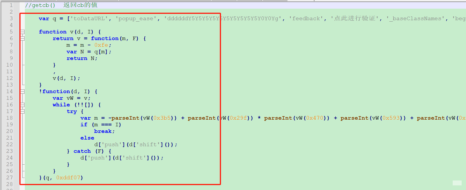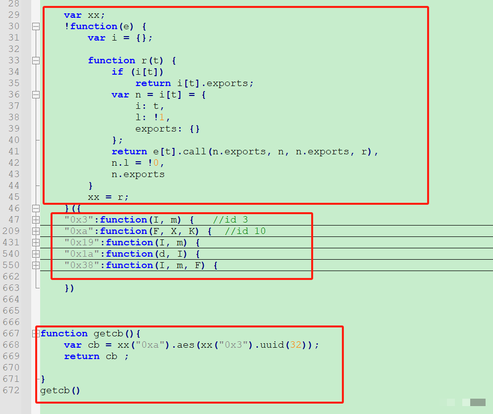 cb值获取类似,但需额外加载webpack执行器。原代码使用十六进制字典映射,需先提取加载器模板,再定位0x**方法。完整获取cb的执行代码通常封装为单独函数,传入特定参数后返回字符串。注意两个修复函数必须同时注入,否则cb计算会直接报错。