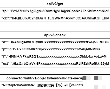 NECaptchaValidate是最终验证字符串。它必须结合fp和轨迹validate才能生成。这个参数逆向相对容易,只要拿到前置数据,拼接后用固定算法处理即可。d、p、f、ext四个字段则复杂些,分别对应位置偏移、轨迹点集、附加签名和扩展信息。必须按顺序计算,不能颠倒。