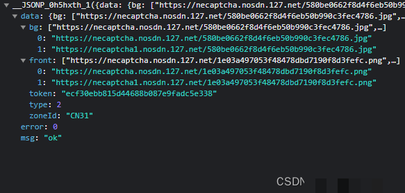 接口返回的bg和front分别代表背景图与滑块图,token和zoneId则用于后续加密。这些值必须精准保存,因为它们直接参与轨迹数据的签名过程。