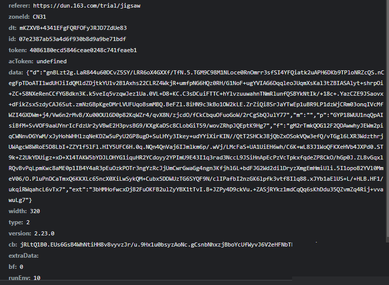 其中d字段是对采样后轨迹的加密,p字段则结合缺口距离进行签名,f和ext分别处理原子轨迹和元数据。加密过程高度依赖token,确保每一次验证请求的签名唯一。实际代码实现时,可以封装一个gen_data函数,传入加密轨迹、token、距离和原子数据。
