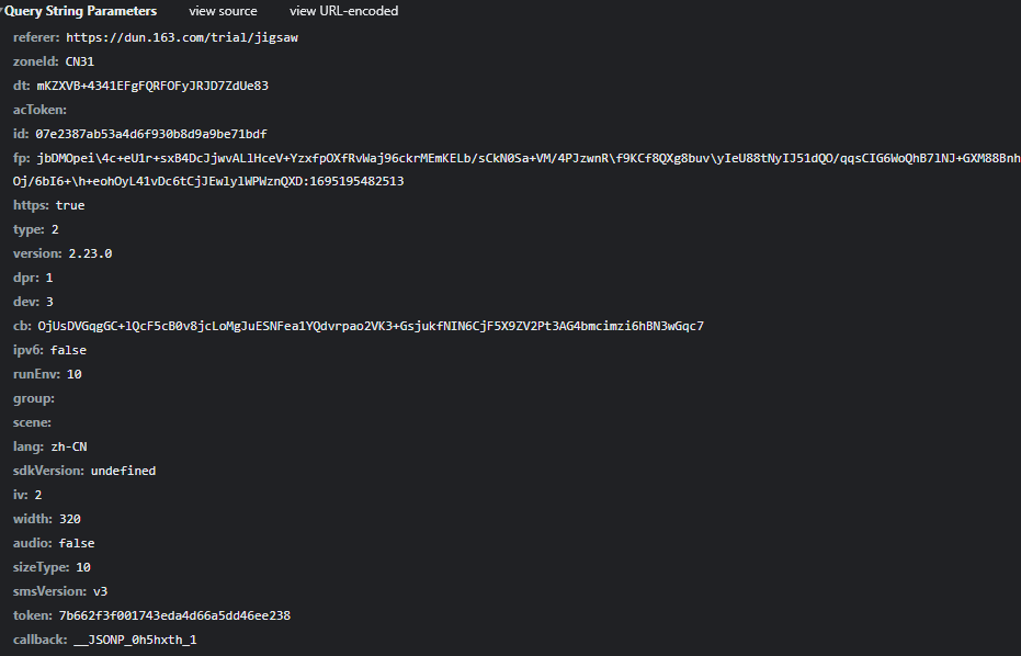 图片获取接口地址固定为https://c.dun.163.com/api/v3/get。请求中id与dt通常为站点预设常量,不同项目可能存在差异,而动态部分则需自行生成,包括actoken、fp、cb以及callback。这些字段共同构成完整的查询字符串,直接决定响应是否返回有效图片资源。