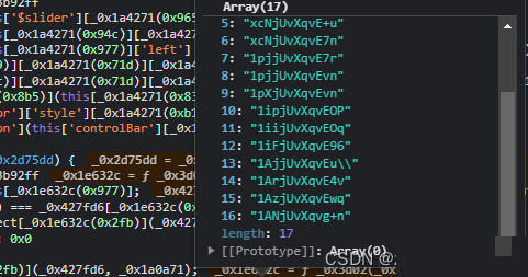 actoken是整个请求中最棘手的部分,它藏在另一段混淆JS里。跟栈调试时找到一个叫bc的函数,就能看到它先取当前时间戳,分成秒和毫秒两部分,再通过一系列位运算和随机数组填充,最后经过base64和自定义加密拼接而成。函数内部大量使用a、b、c这样的数组下标来隐藏真实常量,这正是混淆的典型特征。